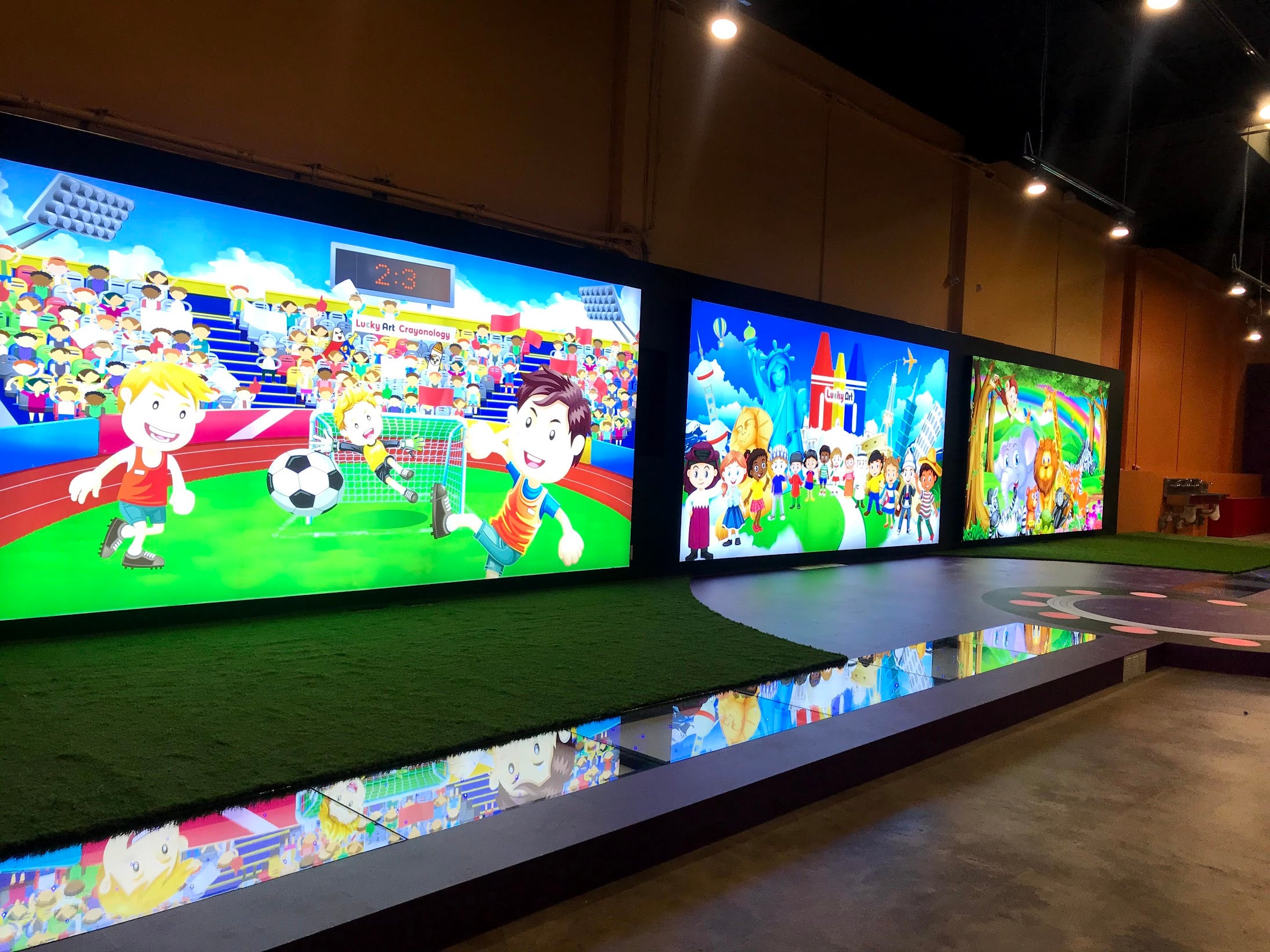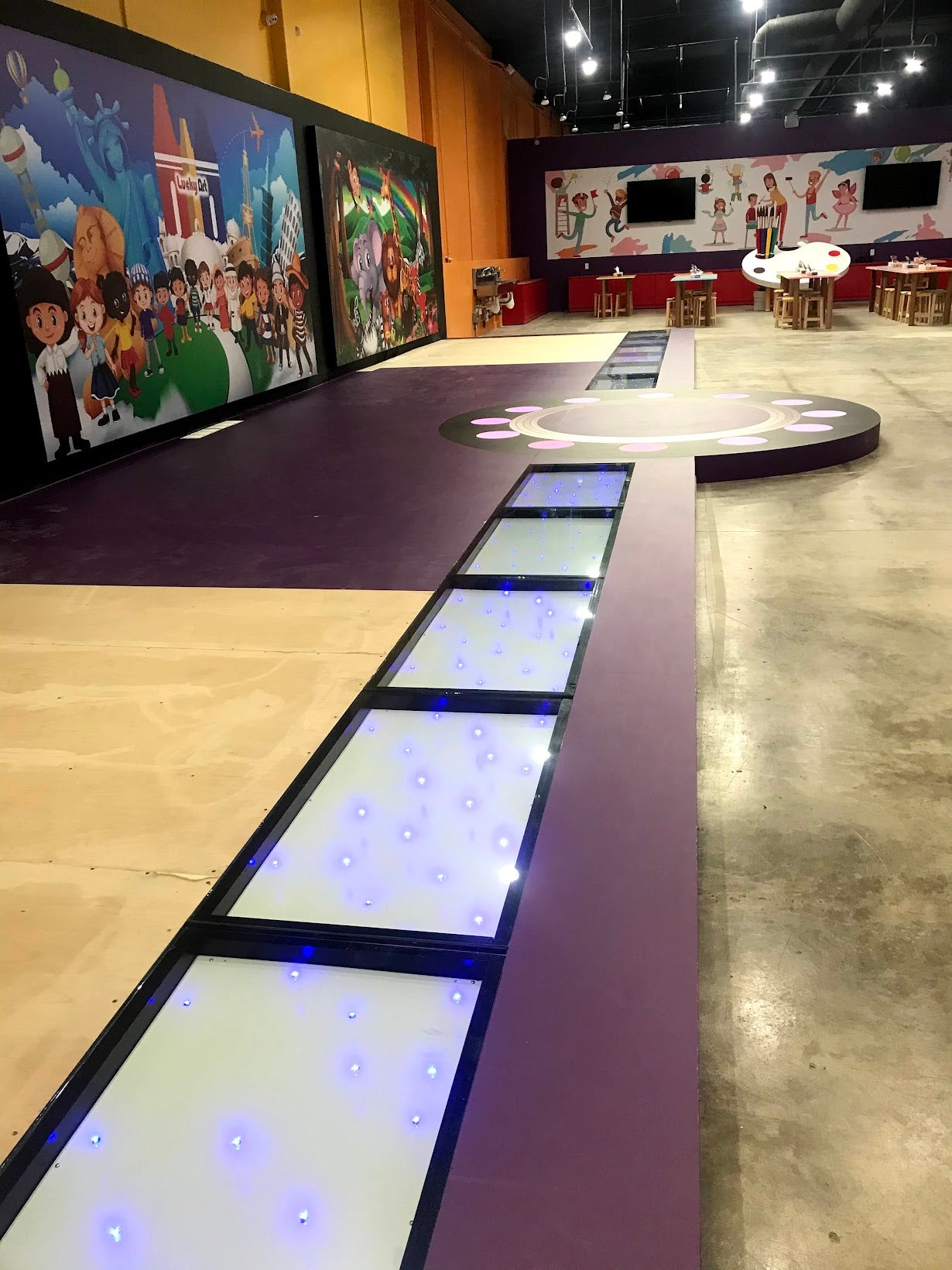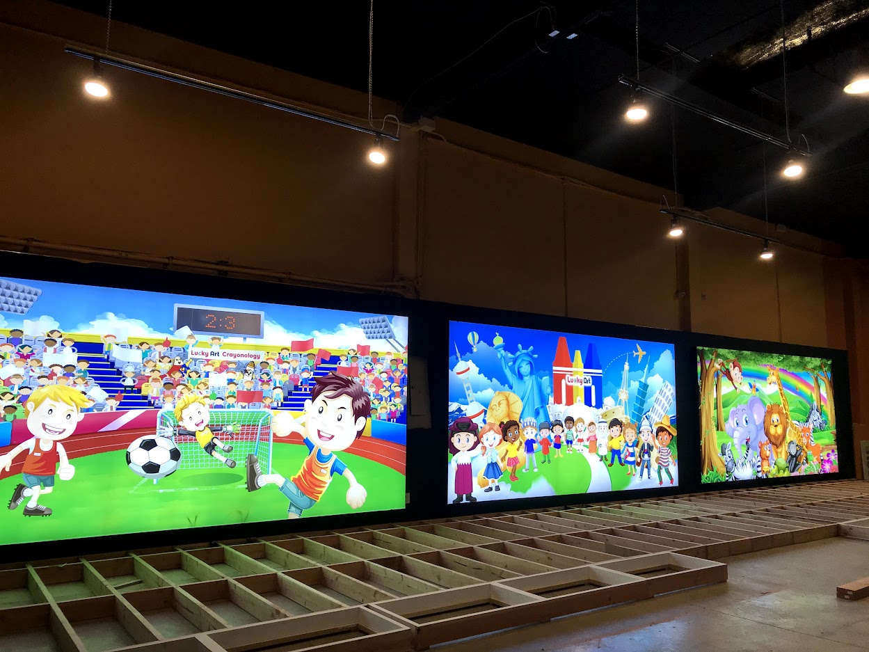 Amongst the infrastructure, we were tasked to create a stage that is fully secured and allows the children to dance, play and interact with the background display screen.