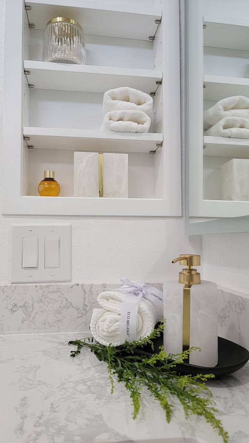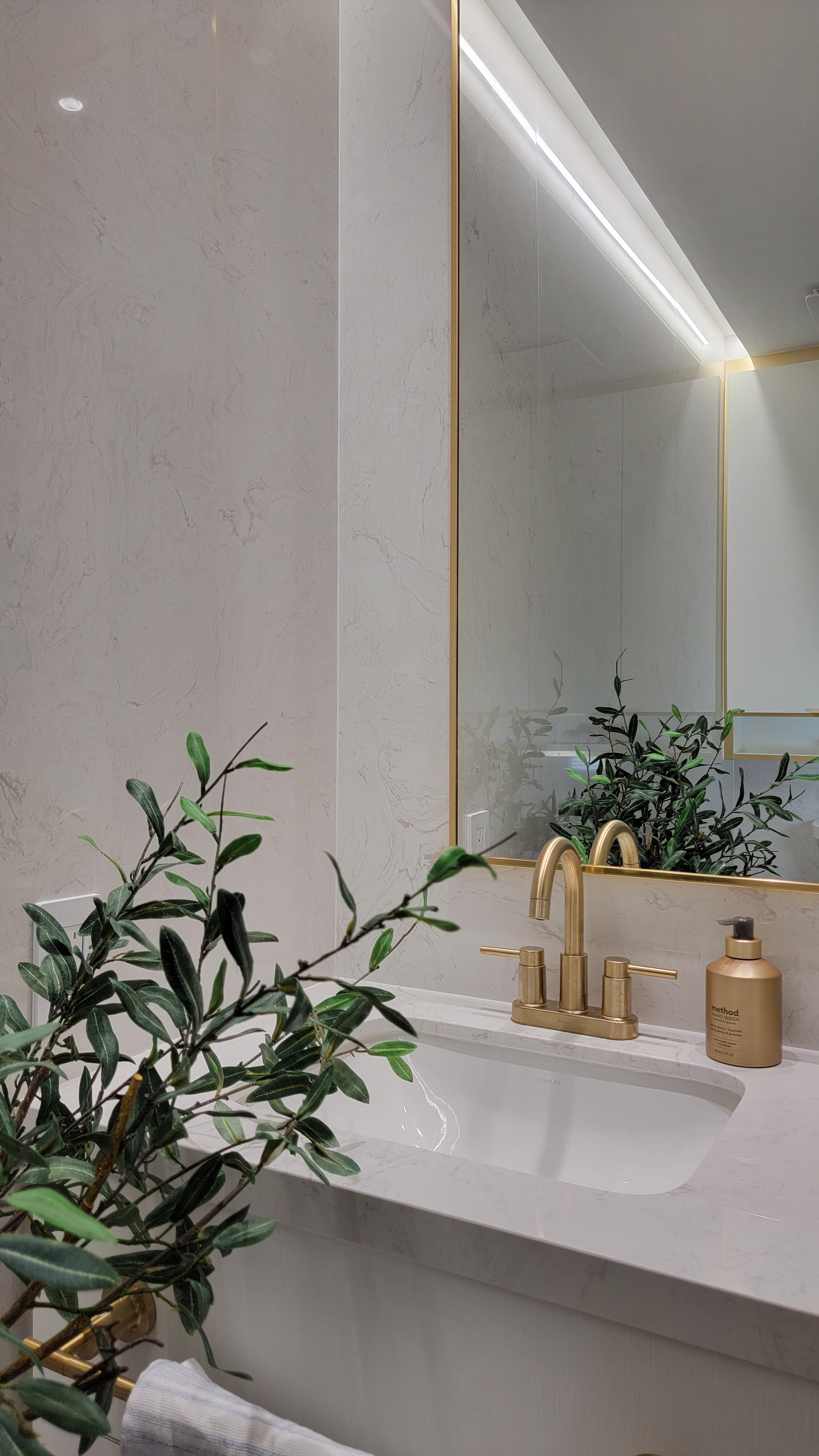 The powder room became a first touch meeting point, where a sense of tranquility is achieved.