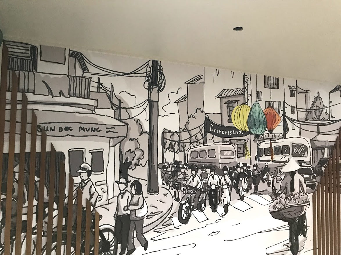Celebrating the Vietnamese food culture, we built a dining bench seating area that allows customers to sit and enjoy the food.